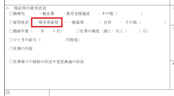 医師に作成してもらう診断書の「現症時の就労状況」欄で、必ず「障害者雇用」にチェックが入っているか確認してください。